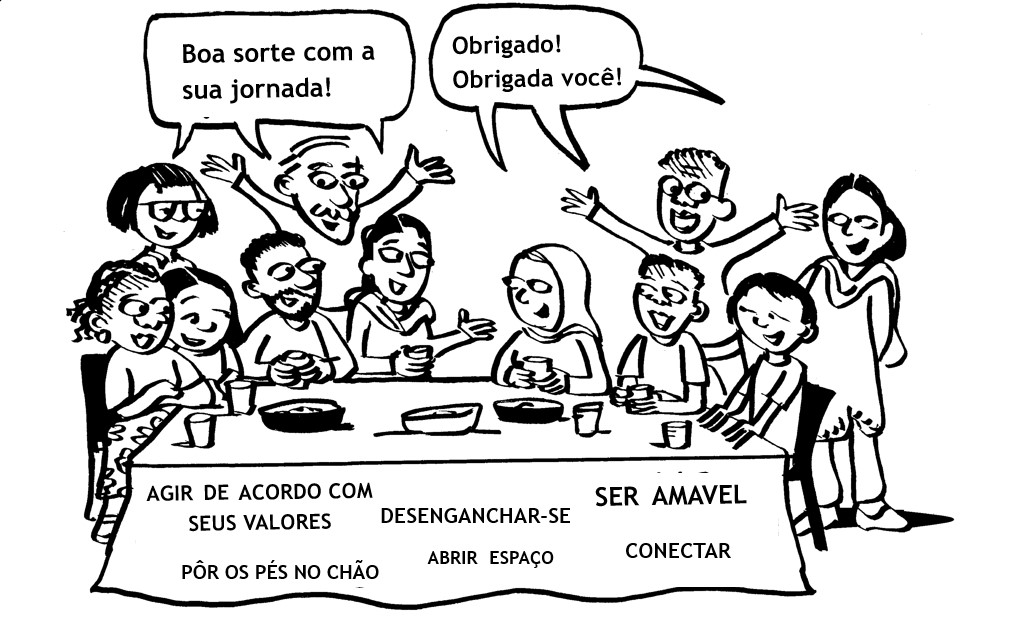 1. Despertar a Consciência do estado interno de cada um, treinando o estar no momento presente, através de exercícios de atenção no que se passa na cabeça, nas sensações corporais e nos sentimentos independentemente da qualidade deles. Quando somos levados por pensamentos, sentimentos e sensações geralmente nos “engajamos” em comportamentos pouco produtivos e tendemos a nos afastar do tipo de pessoa que queremos ser e quem é importante;